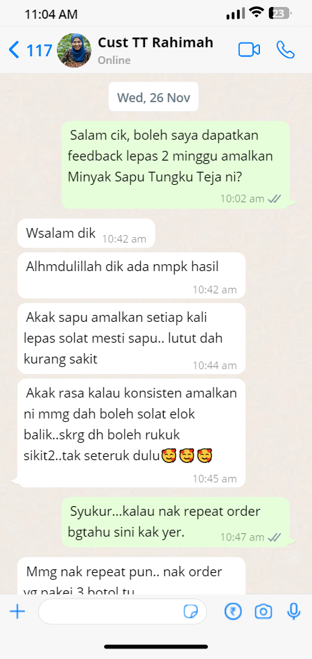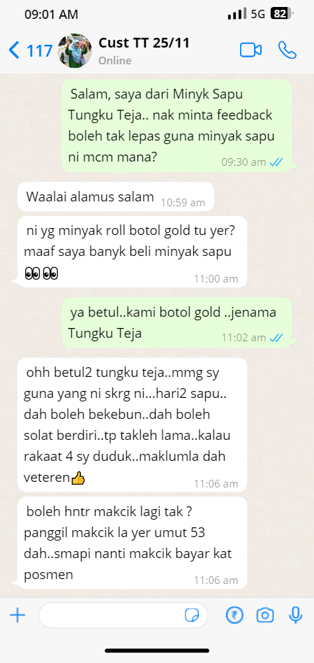 Jom baca feedback pelanggan dah dah gunakan Minyak Sapu Tungku Teja ni.